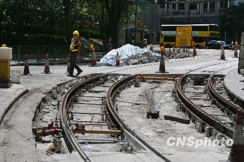 八月二十一日,香港天氣酷熱難當(dāng)。臨近中午時分,正在香港中環(huán)修復(fù)受損電車鐵軌的工人,撤離施工現(xiàn)場避免中暑。據(jù)香港天文臺天氣預(yù)報,酷熱天氣將持續(xù)至下周初。 中新社發(fā) 鄭祚聲 攝
