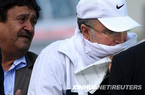 8月20日,在英國蘇格蘭的格拉斯哥機場,制造洛克比空難的利比亞特工邁格拉希(右)準備乘專機離開。新華社/路透