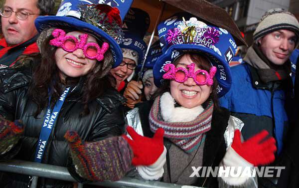 2009年12月31日,兩名女子在美國(guó)紐約時(shí)報(bào)廣場(chǎng)參加迎新年慶典。當(dāng)晚,逾百萬(wàn)民眾來(lái)到紐約時(shí)報(bào)廣場(chǎng)參加新年倒計(jì)時(shí)活動(dòng),歡慶2010年的到來(lái)。時(shí)報(bào)廣場(chǎng)的迎新年活動(dòng)已有百余年歷史,是全球最隆重的新年慶典之一。新華社記者劉欣攝