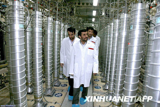 這張拍攝于2008年4月8日的資料照片顯示的是伊朗總統(tǒng)艾哈邁迪-內賈德視察納坦茲核設施。2月9日,伊朗在納坦茲核設施開始生產純度為20%的濃縮鈾。 新華社/法新