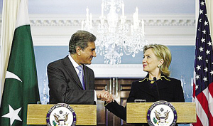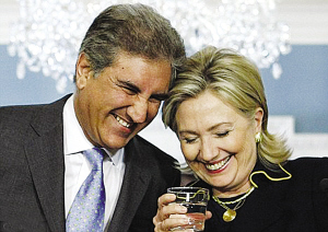 據報道,巴基斯坦外交部長庫雷希于日前前往美國訪問,3月24日,在美國國務院,美國國務卿希拉里與巴基斯坦外長庫雷希首先進行了雙邊會談,然后舉行新聞發布會,回答記者提出的各種國際局勢問題。在記者會上,希拉里和巴基斯坦外長庫雷希共同宣布兩國將展開“全新的合作精神”。在回答記者提問的間隙,希拉里和庫雷希大聲說笑,舉止異常親密!