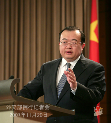2007年11月20日,外交部發(fā)言人劉建超舉行例行記者會(huì),就中日韓、中日、中歐領(lǐng)導(dǎo)人會(huì)晤,東盟簽署《東盟憲章》,巴拉迪伊核問題報(bào)告等答記者問。