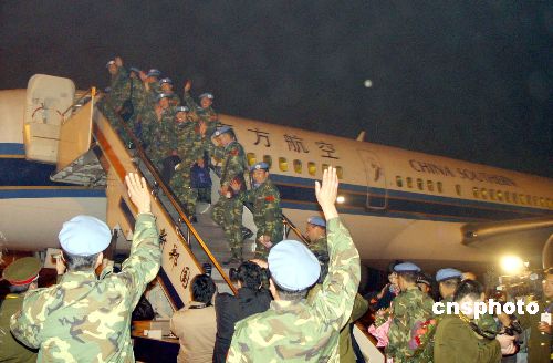 二十三日晚間二十一時許,中國赴蘇丹達爾富爾維和工兵先遣分隊一百三十五名官兵,在鄭州新鄭國際機場登機啟程。 中新社發 李志全 攝