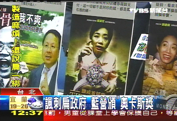 “最佳外語片”,是臺當局“教育部長”杜正勝的“語錄”為腳本的“我不爽所以我有話要說”;“刀刀見骨”由民進黨臺灣地區領導人參選人謝長廷和蘇貞昌當男主角;陳水扁和謝長廷的“同墻異夢”勇奪“終身成就獎”。 (云鵬)