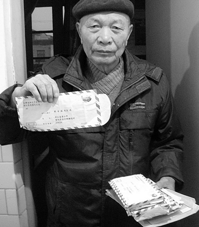 劉有能展示當年的信封。