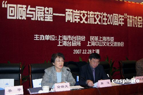 中新社上海十二月二十八日電 (記者 許曉青)“回顧與展望——兩岸交流交往二十周年”研討會今天在上海舉行。來自海峽兩岸的近五十位專家學者、知名人士相聚滬上,話說兩岸恢復民間往來二十年間的點滴心得。