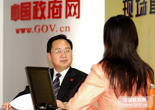 2007年12月11日15時(shí),交通部副部長黃先耀接受中國政府網(wǎng)專訪,就“有效應(yīng)對(duì)海上突發(fā)事件”與網(wǎng)民進(jìn)行在線交流。 圖為訪談現(xiàn)場(chǎng)。 中國政府網(wǎng) 郭小天攝