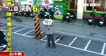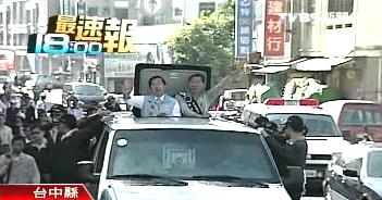 中國臺灣網1月6日消息 據臺灣TVBS電視臺報道,陳水扁今天在中臺灣掃街搶票,但仍舊碰上不喜歡他的民眾,有人高舉自制的倒扁標語,有人比倒扁手勢。陳水扁3公里的掃街路程也忙壞了隨扈和執勤警察,甚至有隨扈累到不行,從車上跌下來,摔個四腳朝天。