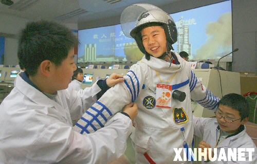 1月24日,東高地三中初一年級的學(xué)生付義南在試穿“宇航服”,和同學(xué)們一起免費(fèi)體驗(yàn)東高地青少年科技館的航天科普活動。當(dāng)日,北京市豐臺區(qū)東高地街道正式啟動“奧運(yùn)牽手”工程,專門制作發(fā)放3000余張“奧運(yùn)牽手卡”給轄區(qū)內(nèi)的學(xué)生,寒假期間,學(xué)生將和父母親一起持卡到社區(qū)登記,參加社區(qū)奧運(yùn)志愿服務(wù)活動,按照服務(wù)的時間長短,社區(qū)進(jìn)行登記“積分”,以評選“奧運(yùn)貢獻(xiàn)獎”。據(jù)了解,凡持“奧運(yùn)牽手卡”的學(xué)生,可以免費(fèi)參加?xùn)|高地青少年科技館的航天科普活動、享受優(yōu)惠價參觀中華航天博物館,到“社區(qū)綠色科普活動站”免費(fèi)借閱圖書和光盤。