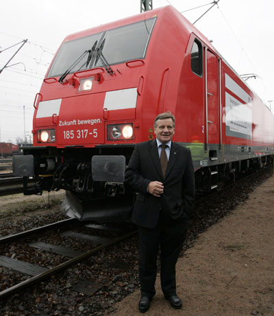 德國鐵路集團總裁梅多恩歡迎來自北京的列車。路透社