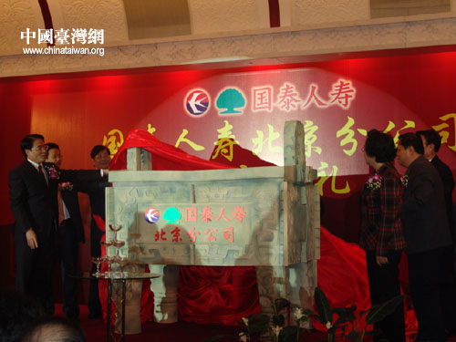 國泰人壽保險有限責任公司北京分公司2月21日在京舉行開業典禮,這是國泰人壽2005年進入大陸市場以來開設的第四家分公司。臺盟中央主席林文漪,全國臺聯會會長梁國揚等出席開業典禮,為國泰人壽保險有限責任公司北京分公司揭幕。(攝影:邵磌)