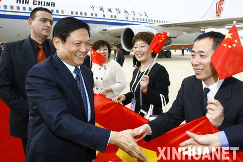 3月23日,應希臘奧委會邀請,中共中央政治局委員、中共北京市委書記、北京奧組委主席劉淇率北京奧運圣火取火代表團抵達希臘,出席第29屆夏季奧運會圣火取火儀式。 新華社記者 李岳 攝