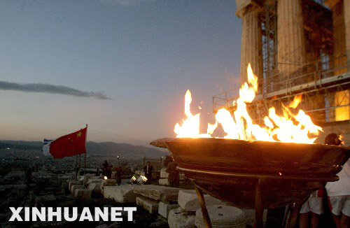3月29日,北京奧運(yùn)會(huì)圣火傳遞到雅典衛(wèi)城。 新華社發(fā)