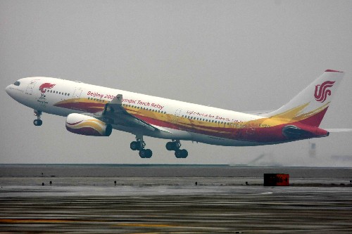 4月1日,“奧運圣火號”飛機起飛。當日,北京奧運圣火搭乘專機離京,正式踏上以“點燃激情、傳遞夢想”為口號的全球傳遞之旅。新華社發(魏萌攝)