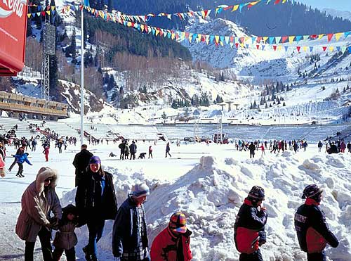 記者在飛機降落的時候看到阿拉木圖市周圍山峰上有很多的雪,這也是它比較有特色的地方。明日,部分傳遞是在山路跑步傳遞,大概到12點40分的時候,第10名火炬手會進行滑冰傳遞,因為哈薩克斯坦的冰上運動項目非常發達。