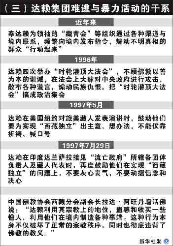 “達(dá)賴口口聲聲自詡是‘藏民族代言人’,我們可以看看他到底干了些什么。這些年,他不是圖謀‘西藏獨(dú)立’,就是充當(dāng)國際反華勢力的滑稽工具;不是在西藏散布反動謠言,就是阻撓正常的社會秩序。尤其是最近的‘3·14’事件,嚴(yán)重影響了西藏各族人民的生產(chǎn)生活秩序。”西藏自治區(qū)黨委宣傳部理論處的陳銳說,“達(dá)賴干的哪一件事代表了藏族人民的意愿和根本利益?他完全在拖西藏進(jìn)步的后腿。”