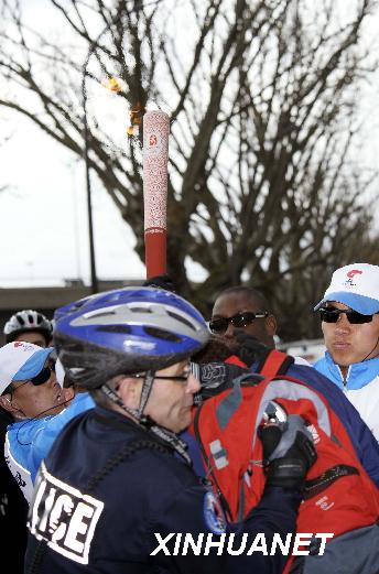 4月7日,北京奧運(yùn)圣火在巴黎傳遞時(shí)遭遇少數(shù)“藏獨(dú)”分子的干擾破壞。這是巴黎警察及時(shí)制止一名擾亂火炬?zhèn)鬟f者試圖從火炬手手中搶奪火炬。 新華社記者戚恒攝