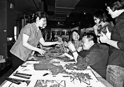 漳浦民間藝術家張崢嶸出身于剪紙世家,是福建省著名剪紙藝人黃素的外孫女。在福建民間美術展上,張崢嶸和浦城剪紙藝術家謝美貞的表演攤位總是吸引了眾多的觀眾。張崢嶸說此次她專門為展覽準備的140多張剪紙作品,不到兩天就只剩下了20多張勉強“撐門面”,其他都被參觀的臺灣鄉親取走。