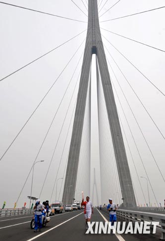 新華網(wǎng)江蘇南通5月25日電(記者王恒志、郭奔勝)奧運圣火25日下午在江蘇省南通市進(jìn)行傳遞,圣火在新落成的蘇通大橋上完成交接,成為南通市圣火傳遞的一大亮點。
