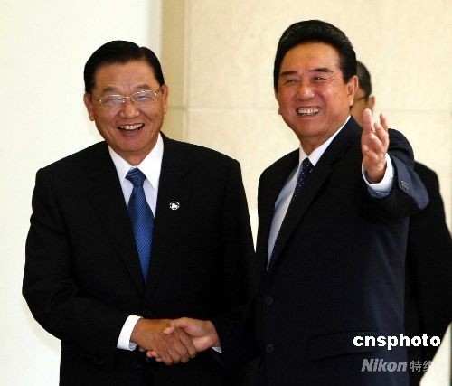據(jù)臺灣東森新聞報(bào)道,江丙坤和陳云林坐上談判桌先握手15秒,暌違十年的兩岸兩會復(fù)談?wù)秸归_。遠(yuǎn)來是客,海基會董事長江丙坤率領(lǐng)的海基會代表團(tuán),首先進(jìn)場就座,海協(xié)會會長陳云林再率團(tuán)進(jìn)場。兩人很有默契,都打藍(lán)色領(lǐng)帶,雙方人馬就座后,再握一次手。