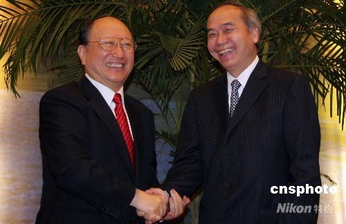 6月23日,中國工程院院長徐匡迪與中國工程院去年新增選院士、臺灣高雄長庚紀念醫院院長陳肇隆教授(右)相見甚歡。中國科學院第十四次院士大會、中國工程院第九次院士大會當日在北京開幕,陳肇隆專程參會,并在下午舉行的中國工程院第九次院士大會全體會議上,獲頒該院院士證。 中新社發 孫自法 攝