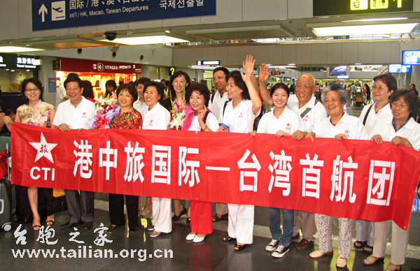 北京市臺聯副會長葉芳、鄭大等人專門到機場為她們送行。當大家拉開寫有“常回家看看—歡送在京臺胞隨首發團赴臺旅游”的橫幅合影留念時,立刻引來了眾多在場的記者和游客們的鏡頭和關注。
