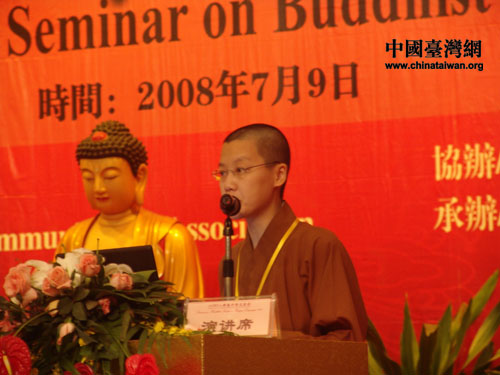 在上海玉佛寺舉行的“2008佛教外語交流會”上,臺灣佛光山妙光法師流利漂亮的英文演講博得滿場掌聲(賀晨曦 攝)