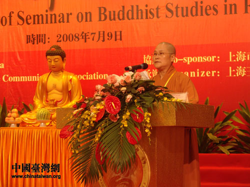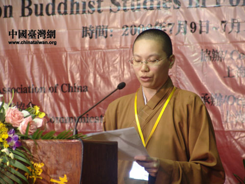 中國臺灣網7月10日上海消息 今天上午,在上海玉佛禪寺“2008佛教外語交流會”的會場上,來自臺灣佛光山的妙光法師以其流利漂亮的英文演講博得了滿場掌聲。此次交流會有來自臺灣地區佛教界二十余名外語人才代表蒞會,并以英語、日語等多種語言進行演講。對于佛教交流在兩岸交流中扮演的重要角色,以及中國佛教文化的對外傳播對于弘揚中華文化的意義,這些來自臺灣的法師也向記者表達了自己的獨特體悟。