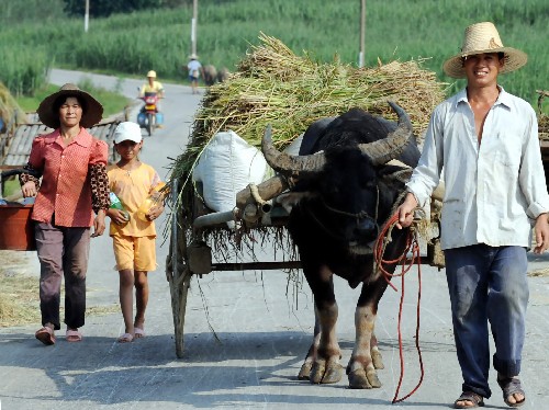 7月17日,廣西柳城縣古砦仫佬族鄉(xiāng)古旭村農(nóng)民周漢平將收獲的稻谷運(yùn)回家。 今年以來,廣西遭受罕見的冰凍和洪澇災(zāi)害襲擊,農(nóng)作物生產(chǎn)不同程度受到損害,當(dāng)?shù)攸h委、政府在災(zāi)后積極組織群眾進(jìn)行生產(chǎn)自救。目前,廣西桂北地區(qū)的農(nóng)民已在長勢喜人的稻田間開鐮收谷,爭奪夏糧穩(wěn)產(chǎn),降低災(zāi)害損失。 新華社記者 張愛林 攝
