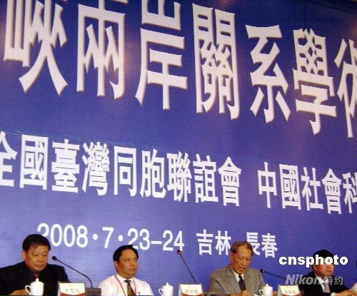 7月23日,第十七屆海峽兩岸關(guān)系學(xué)術(shù)研討會(huì)在長(zhǎng)春市召開(kāi),中國(guó)大陸、臺(tái)港澳地區(qū)及海外的近百位專(zhuān)家學(xué)者與會(huì)。圖為前全國(guó)人大常委會(huì)副委員長(zhǎng)、全國(guó)臺(tái)灣研究會(huì)會(huì)長(zhǎng)成思危(右二)、國(guó)務(wù)院臺(tái)辦副主任孫亞夫(左一)、全國(guó)臺(tái)聯(lián)會(huì)長(zhǎng)梁國(guó)揚(yáng)(左二)、社科院臺(tái)研所所長(zhǎng)余克禮(左一)等出席會(huì)議。 中新社發(fā) 劉舒凌 攝