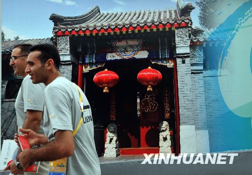 7月28日,兩位來自利比亞的奧運代表團(tuán)成員從奧運村里一幅巨大的四合院招貼畫前走過。 隨處可見的中國元素為奧運村增添了風(fēng)采,也方便了來自世界各地、參加北京奧運會的賓朋體驗獨特的中國文化。 新華社記者 王定昶 攝
