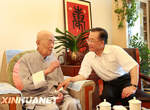 2日上午,中共中央政治局常委、國務院總理溫家寶專門看望為我國科技、文化、教育事業作出重要貢獻的季羨林、錢學森和何澤慧老人,向他們致以親切問候。