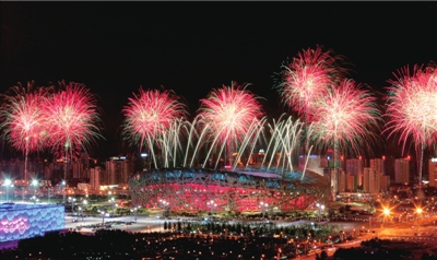 “五環(huán)”焰火直沖云霄