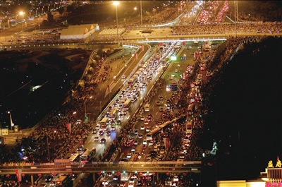 四環(huán)擁堵的人流和車流。