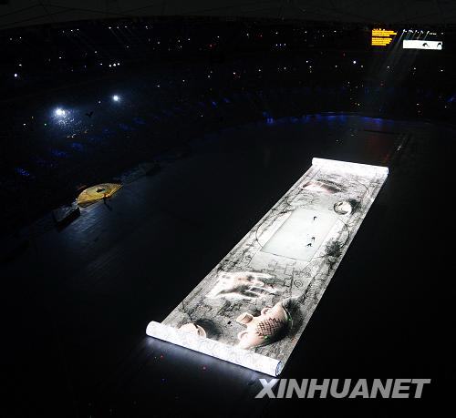 8月8日晚8時,第29屆夏季奧林匹克運動會在國家體育場——“鳥巢”隆重開幕。這是開幕式上的大型文藝表演《美麗的奧林匹克》。新華社記者張鐸攝