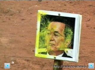 臺(tái)中都會(huì)公園一家漆彈場(chǎng)開辟不滿發(fā)泄區(qū),讓游客提供討厭對(duì)象的相片當(dāng)槍靶發(fā)泄,現(xiàn)在最紅的就是陳水扁家庭成員。來(lái)源:臺(tái)灣今日新聞