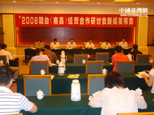 中國臺灣網9月2日消息 由國務院臺灣事務辦公室和江西省人民政府共同主辦的2008年贛臺經貿合作研討會新聞發布會今日在南昌舉行。“研討會”組委會有關負責人就會議的籌備情況、主要特點及贛臺經貿合作情況作了介紹。此次“研討會”將于9月21日至26日在南昌舉辦,屆時將有1000余位臺灣客商和知名人士出席會議。