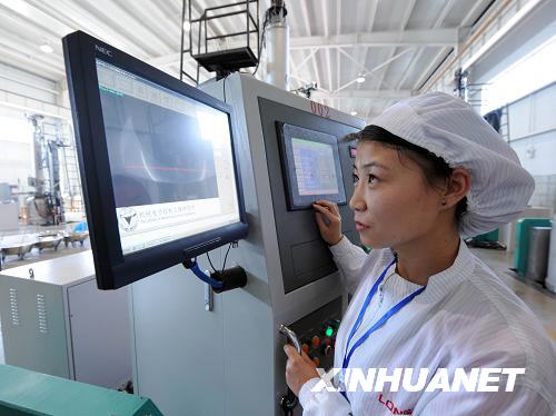 9月4日,企業(yè)員工在操作屏前觀察單晶硅生產(chǎn)情況。目前,寧夏2000噸單晶硅一期項目已完成投資1.3億元,并投入生產(chǎn),預(yù)計年產(chǎn)單晶硅600噸。該項目共分三期,總投資6.94億元。整個項目預(yù)計于2009年完成。企業(yè)全部投產(chǎn)后每年可實現(xiàn)銷售收入44億元、稅收1.5億元。單晶硅的原料生產(chǎn)與產(chǎn)品開發(fā)具有較高的科技含量和工業(yè)生產(chǎn)附加值。新華社記者 劉海峰 攝
