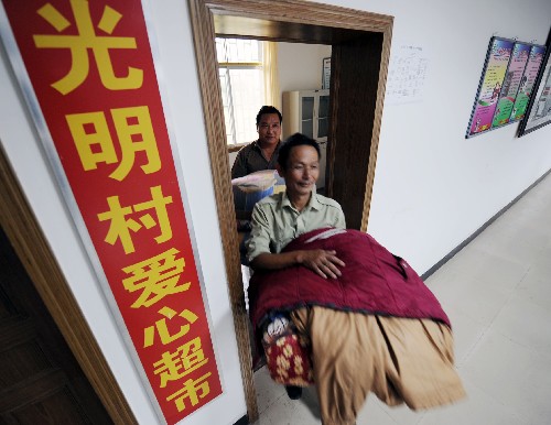 為幫助和救濟(jì)農(nóng)村困難群體,南昌市新建縣自2006年開始在全縣305個(gè)行政村陸續(xù)成立了愛心超市,提供米油、棉被、衣服等物品為困難群眾排憂解難,這些物品主要是來自上級(jí)民政部門和社會(huì)各界的自發(fā)捐贈(zèng)。 這是新建縣大塘坪鄉(xiāng)光明村的“愛心超市”(10月9日攝)。 新華社發(fā)(周科攝)