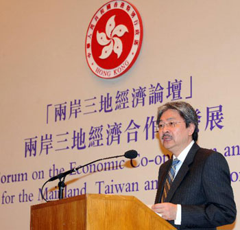 曾俊華在該論壇上致歡迎辭時說:“香港在內地跟臺灣的經貿交流上,擔當重要的角色。香港是往來內地和臺灣旅客的主要轉接地點,也是兩地貨物貿易的主要轉口港。兩岸的經貿關系過去幾年逐漸改善,經過香港轉口的兩岸貿易在2002到2007年間仍然以年均15%的速度增長,占香港整體對外貿易的比例也從2002年的5.6%,上升到2007年的6.5%。”