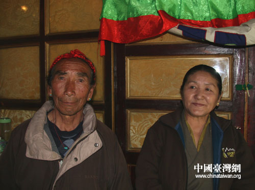 家中擺著一家人去日喀則江孜旅游時在白居寺的合影,他的兒媳婦在一旁介紹,四年前家里包了一輛中巴,去江孜旅游。女婿還指指旁邊小一點的照片說:“這是去林芝拍的,我們還去內(nèi)地旅游,北京、上海都去過了。” 現(xiàn)在老人腿腳不好,不能經(jīng)常出去了,平時只能通過看電視了解外面的事,“老人喜歡看藏語電視,聽得懂,可以知道好多事,也很高興。”