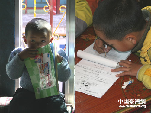 次仁央宗說,原來吉麥家周圍是片農(nóng)地,他們現(xiàn)在也以農(nóng)活為生,有三兒三女,兒子都讀過書,初中畢業(yè),而且現(xiàn)在都在市里有工作,身邊玩耍的是他們的孫子。一個孫子剛上小學(xué)三年級,見到記者的到來興奮地把一張數(shù)學(xué)卷子放在了一邊,當(dāng)記者問他喜不喜歡數(shù)學(xué)課時,他想都不想就說:不喜歡,喜歡上藏文課。