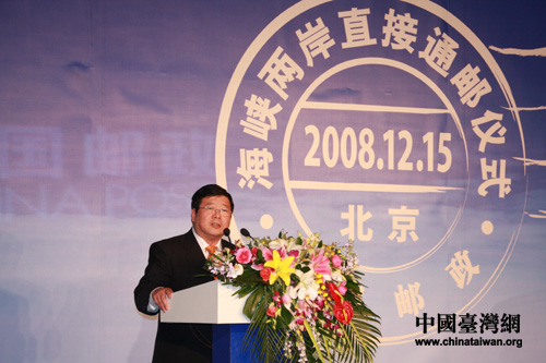 國務院臺灣事務辦公室副主任孫亞夫在海峽兩岸直接通郵啟動儀式上致辭(鐘寶華 攝)