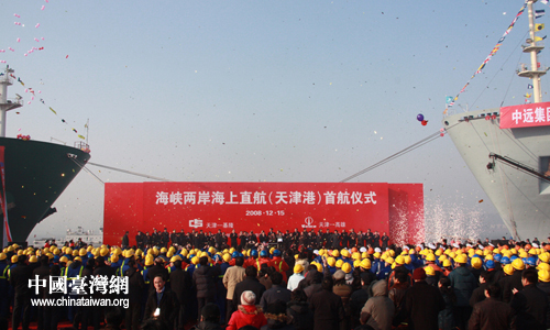 15日上午9時30分,海峽兩岸海上直航首航儀式在天津港東疆保稅港區隆重舉行。中國臺灣網 李徽攝
