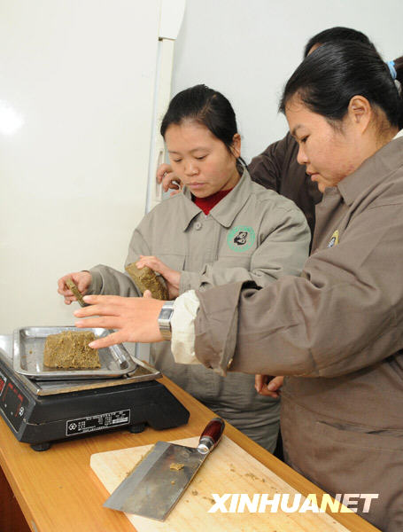 下午3點(diǎn)多,團(tuán)團(tuán)圓圓管理室。游雪音熟練地從冰箱里取出兩片“熊貓窩窩頭”,在天平上一稱,不多不少正好350克,這是大熊貓一餐進(jìn)食窩窩頭的定量。12月12日來(lái)到碧峰峽學(xué)習(xí)飼養(yǎng)技術(shù)后,這個(gè)小個(gè)子姑娘特別努力。“團(tuán)團(tuán)”“圓圓”每天進(jìn)食6次,每次竹子、窩窩頭、蘋(píng)果和胡蘿卜的量不一樣,細(xì)心的小游早就把這些數(shù)字謹(jǐn)記在心。