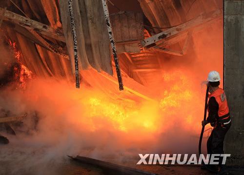 1月15日,巴勒斯坦消防人員為遭以軍炮擊后起火的聯合國駐加沙的辦公機構滅火。新華社記者納賽爾攝