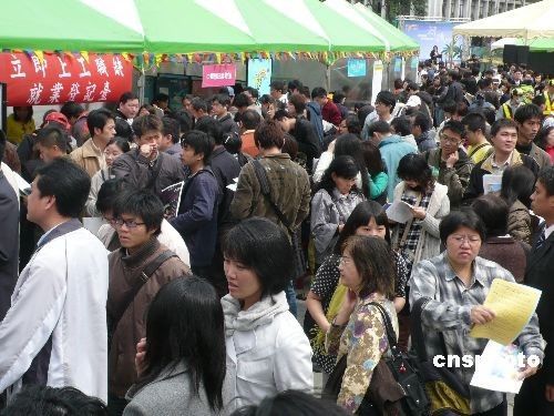 圖為就業博覽會上求職民眾人潮涌動,人人都盼望能夠“立即上工”。