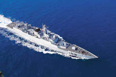 參加“和平—09”海上多國(guó)聯(lián)合軍演的中國(guó)海軍“廣州”號(hào)導(dǎo)彈驅(qū)逐艦。新華社發(fā)