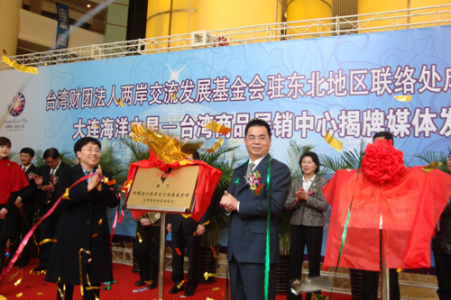 3月22日,臺灣財團法人兩岸交流發展基金會駐東北聯絡處在大連經濟技術開發區南部海濱的大連海洋之星正式掛牌,大連海洋之星臺灣商品展銷中心也同時揭牌。據悉,大連海洋之星項目全部建成后,將成為臺灣商品走向東北地區的集散地與銷售平臺,逐步形成臺灣產品在大陸銷售“南有廈門,北有大連”的格局。圖為揭牌儀式現場。(攝影 朱潤博 魏勤英)