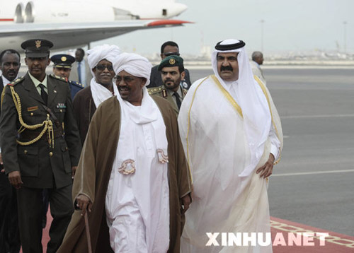 巴希爾在多哈國際機場受到了卡塔爾埃米爾(國家元首)哈馬德·阿勒薩尼和阿盟秘書長穆薩的熱情迎接?ㄋ柺前拖栐趪H刑事法院對其發出逮捕令后出訪的第四個國家,此前,他先后出訪過厄立特里亞、埃及和利比亞。